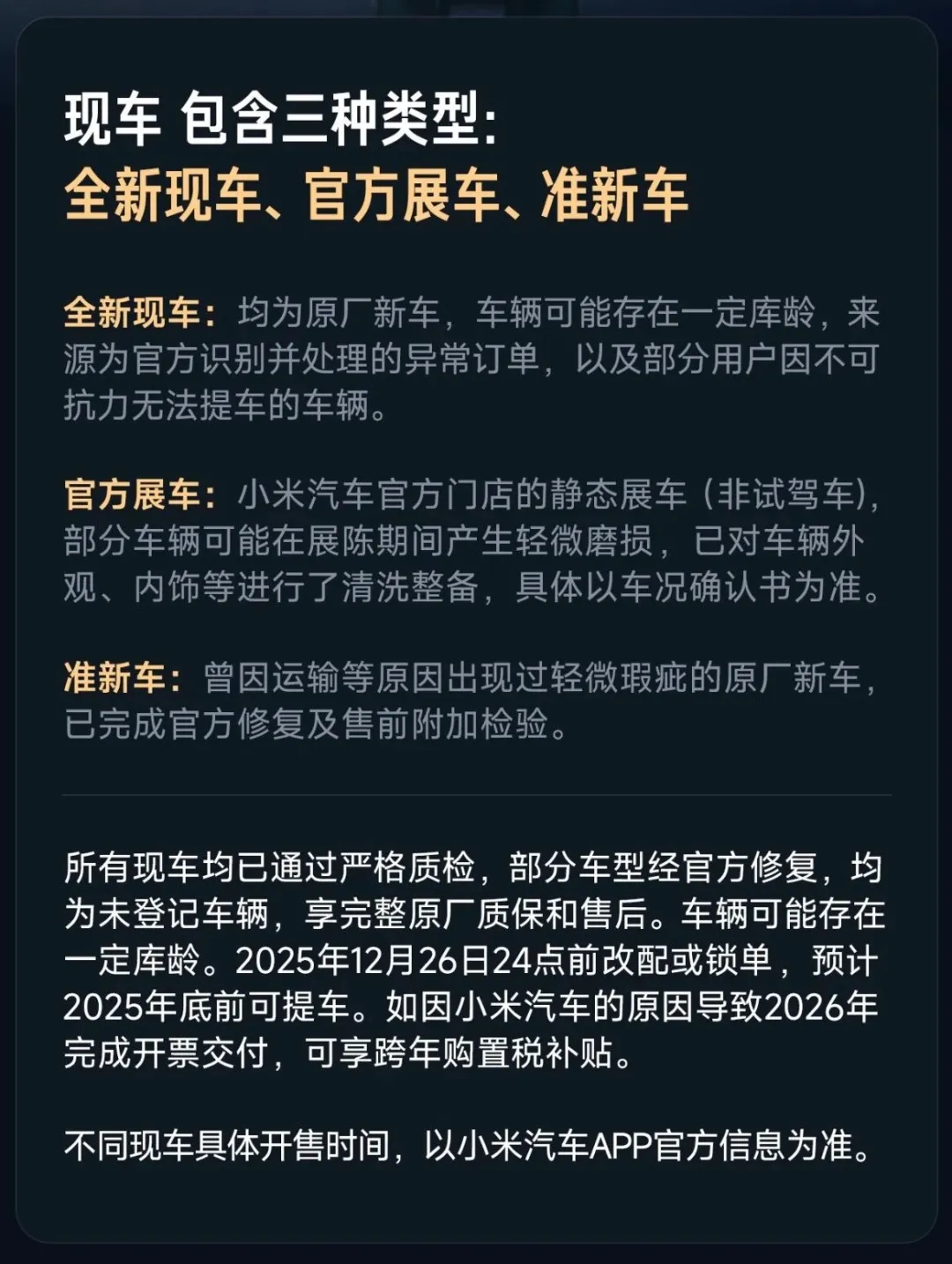 然而,近期小米汽车开启“现车选购”且部分车型可享优惠,与此前下定用户漫长的交付等待形成反差。