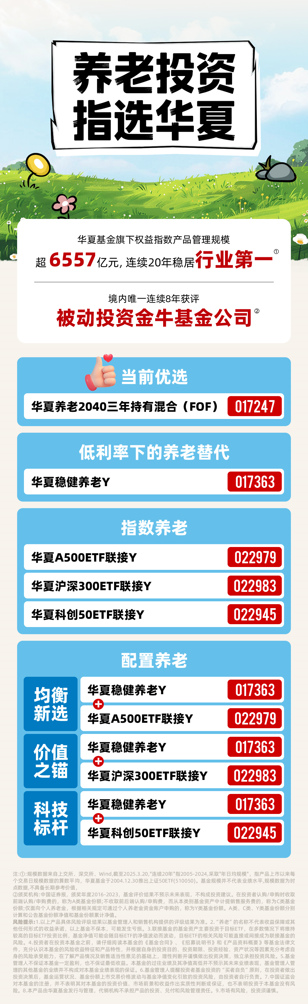 目前,共有22只养老基金进入个养产品名录,包括10只指数基金,8只目标日期基金,4只目标风险基金。目前华夏基金旗下的Y份额个人养老基金规模共计20.1亿,为目前管理规模最大的基金公司。(数据来源:Wind,截止2025.9.30)