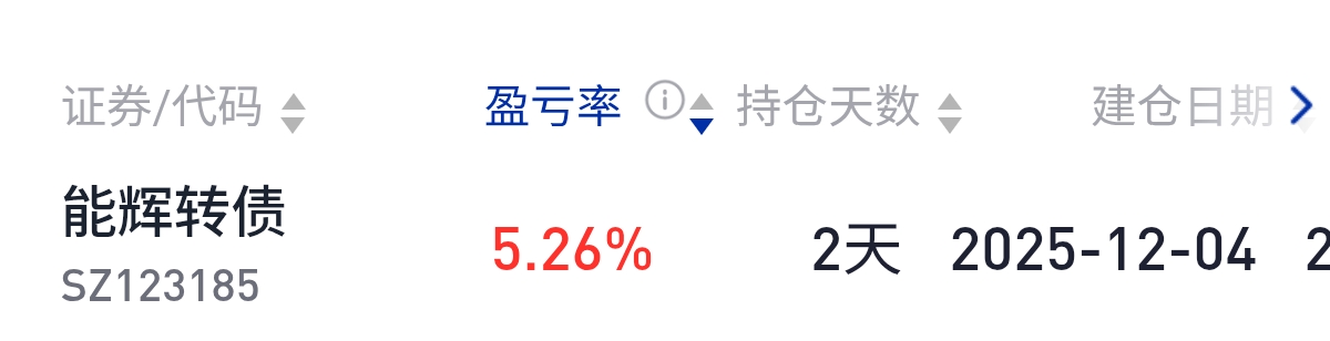 图中是本月隔夜的盈亏率、持有天数、建苍日期等,能辉转债如图。#炒股日记#