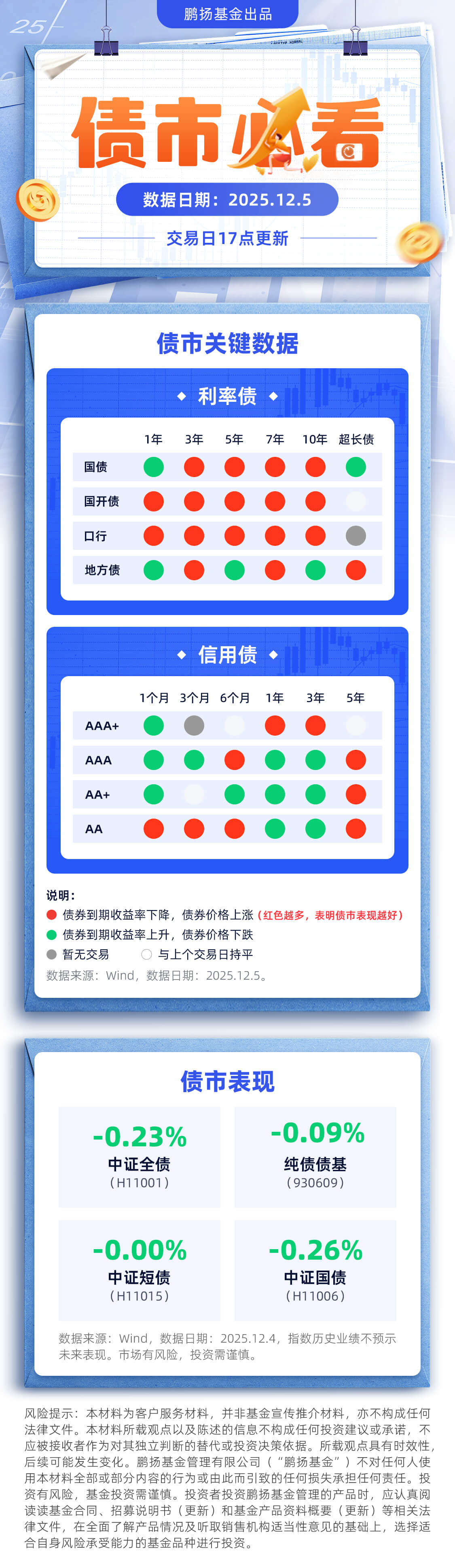 【12月5日17点】今日债市必看 摘要:今日利率债多云,信用债小雨