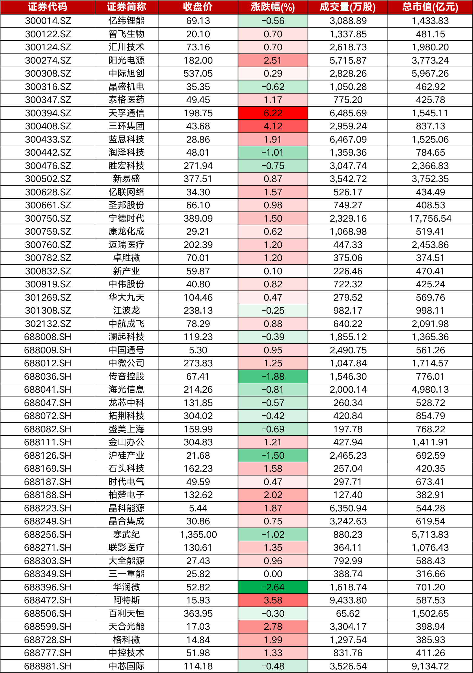 今日成分股天孚通信、三环集团涨幅居前。