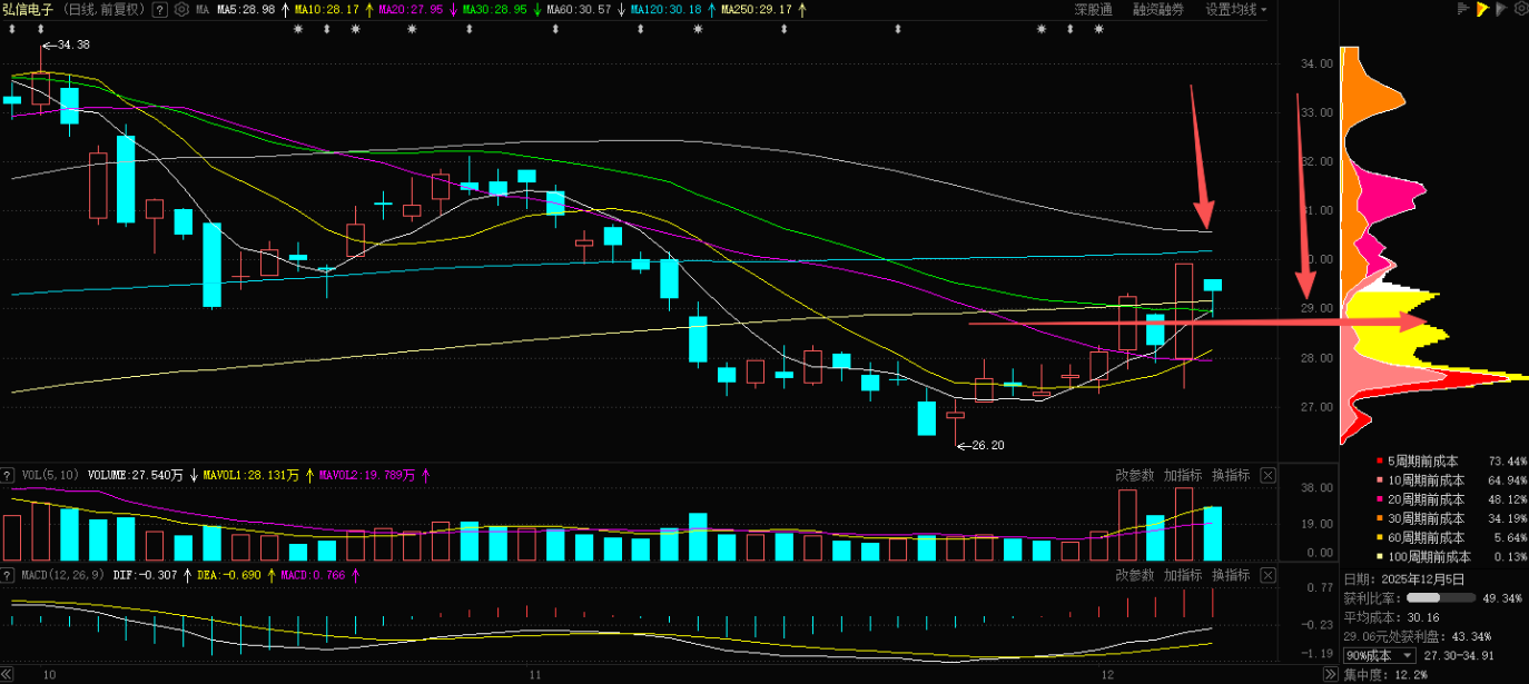 $弘信电子(SZ300657)$目前趋势依然在,风险较低,持有的话可以先暂时寻求做T的机会,底部强力支撑,筹码集中,虽说上方压力仍在,有可能会先走横盘震荡的趋势先盘整,不破29的位置依旧可以坚定持有等待拉升