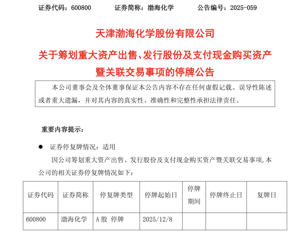 渤海化学表示,截至目前,本次交易仍处于筹划阶段,交易各方尚未签署正式的交易协议,本次交易最终能否实施存在不确定性。敬请广大投资者注意投资风险。