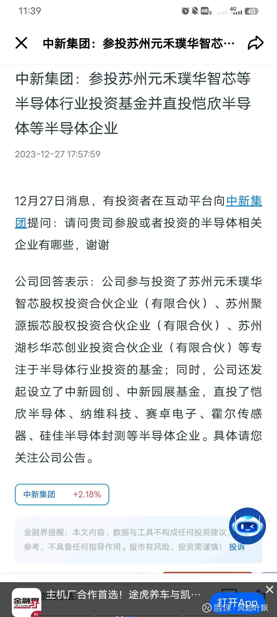 $中新集团(SH601512)$ 国资破净股+投资了很多明星公司,比如宇树科技、云深处昆仑芯。投资汇总链接:网页链接
