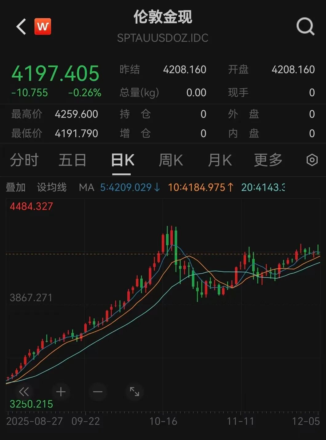 12月以来,金价维持在4200美元/盎司关口震荡。本周,伦敦金现收报4197.405美元/盎司,周跌幅为0.5%;COMEX黄金收报4227.7元/盎司,周跌幅为0.67%。