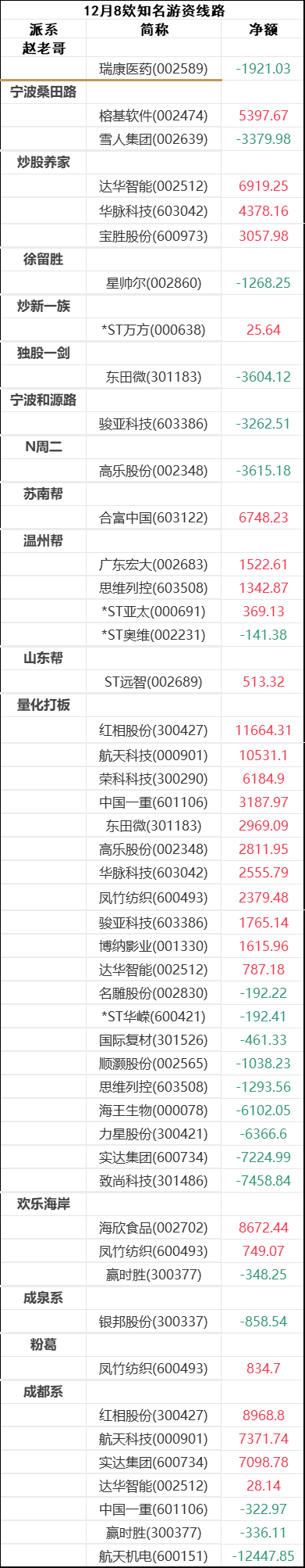 12月8日龙虎榜,瑞可达、荣科科技(300290)、榕基软件(002474)为当日龙虎榜净买入额前三,分别为2.51亿元、2.44亿元、1.90亿元。