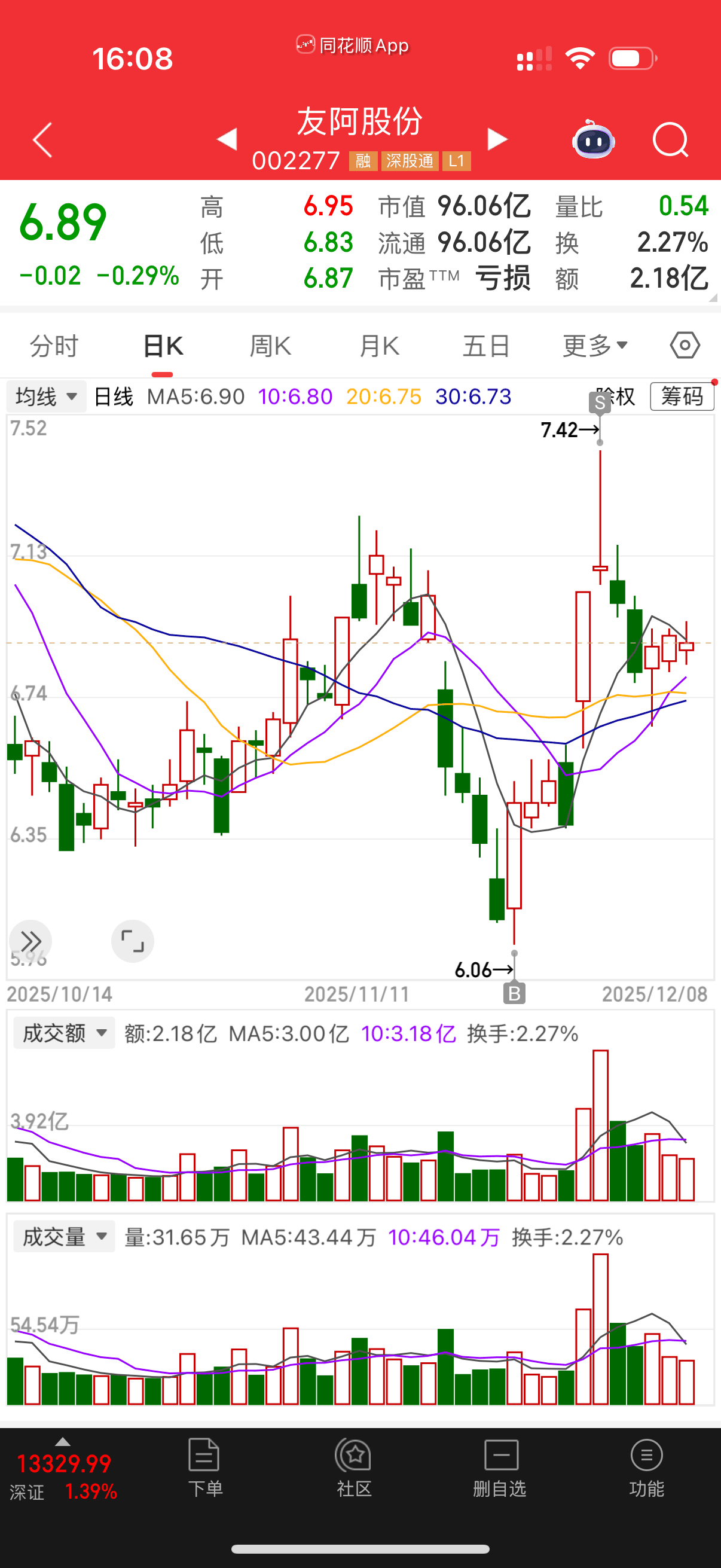 友阿股份日线低开低走,收盘在20日线上方,还会考验10日线的支撑,只有突破前期高点,趋势才会扭转,周线已经运行5日线上方,周线KDJ指标拐头向上了,月线已经运行到10日线上方,月线MACD指标已经金叉了
