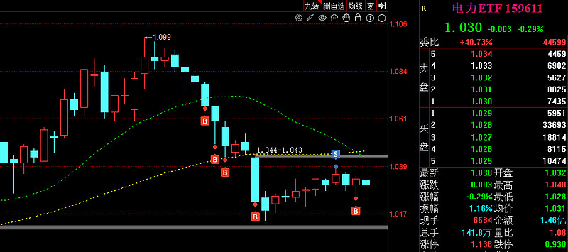 1208观望:电力ETF收跌,早盘上涨,因修改《投资这回事》导论,错失止盈良机