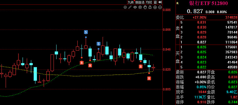 1204补仓未成交:银行ETF跌破新低,因跌幅小,以0.829限价单补仓未成交