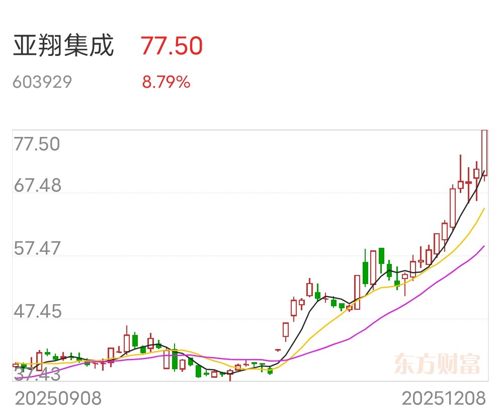 3、亚翔集成:专业工程+富士康概念+华为概念+柔性屏+OLED+长三角一体化+海峡两岸+芯片概念+中芯国际概念等,已经出现十一连阳,做投资需要顺势而为,主抓市场热点板块和个股,赛道必须要提前把握,个股更要通过各方面去分析评判,才能有机可寻,看本周表现如何再行定夺。