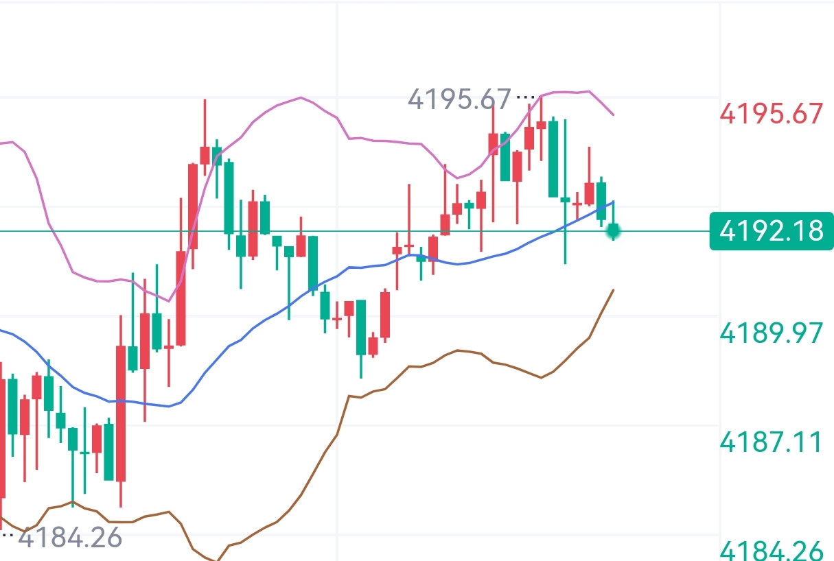 12.9 早间黄金观点|下跌放缓,关注筑底信号昨夜黄金下探4176后快速反弹,目前维持在4190上方震荡。从1小时走势看,当前属于下跌后的技术修复,尚未形成反转,整体仍处于弱势格局。均线方面,短周期均线仍呈空头排列,但下跌动能明显减弱,价格在布林下轨获得支撑。上方关键压力在4200-4205(中轨)及4220-4225(上轨),只有站稳中轨并放量突破上轨,短期趋势才有望转强。从量价来看,下跌缩量、下影线增多,说明低位承接力增强;但反弹量能不足,属于修复性质。若能在4190-4195区域持续企稳,有望向上测试4215-4220;若失守4180支撑,则可能再次探底4165-4170。整体而言,市场处于下跌尾声的震荡筑底阶段,短期方向待突破确认。操作上,可关注4190-4195区域的支撑表现,企稳可轻仓试多,目标4215-2220;若跌破4180则观望。#黄金投资讨论区#