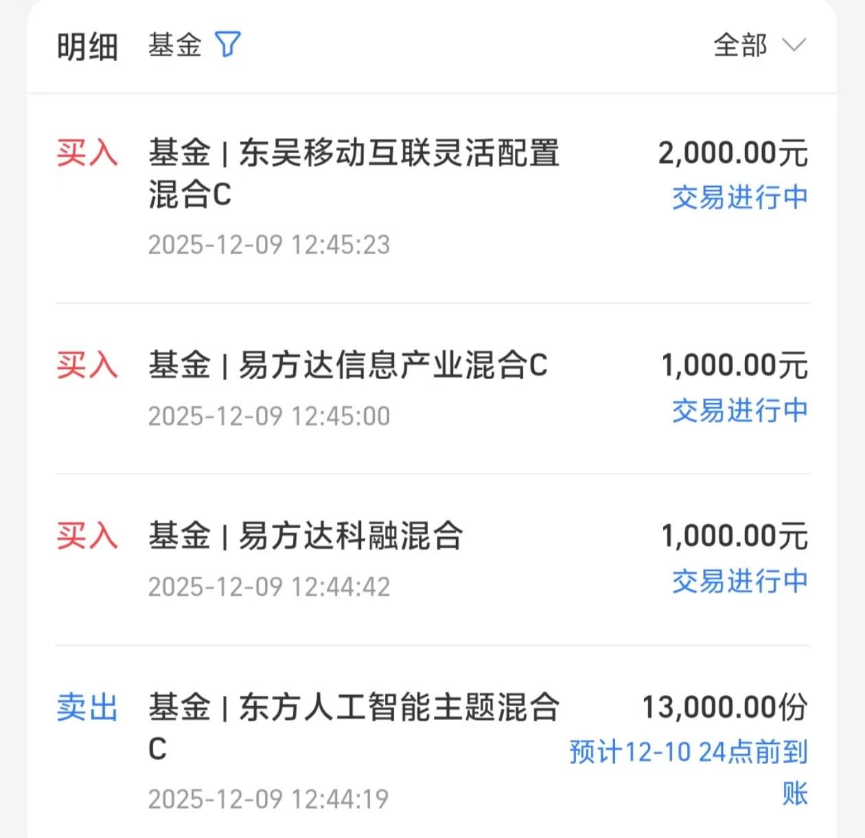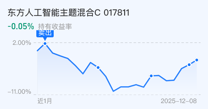 $东方人工智能主题混合C$目前涨了1个点不到,这一波反弹只有CPO的一小半,不过也算回本了,今天先减仓20000,剩下的2万仓位再观望一下,后续半导体的仓位我不会放很多。
