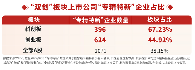 双创板块 “专精特新” 企业占比(科创板 67.23%,创业板 44.92%)远超 A 股平均水平(38.15%),细分龙头聚集。