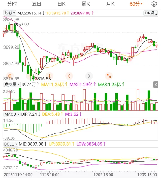 技术面上以上证60分钟K线作为参考,今天到收盘已经回踩20日线。