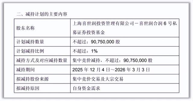 11月11日,永辉超市发布了一则公告,公告中称,董事长张轩松及其一致行动人因“自身资金需求”,计划通过集中竞价交易方式减持不超过9075万股,即不超过公司总股本的1%。