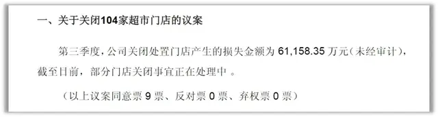 根据10月末的披露,第三季度,永辉超市关闭处置门店104家,产生的损失金额为6.12亿元(未经审计),粗略估算每家门店的闭店成本为588.06万元;而去年同期披露的数据,第三季度永辉超市关闭124家超市门店及1家mini店,产生的损失为4.65亿元(未经审计),粗略估算每家门店的闭店成本为371.86万元。