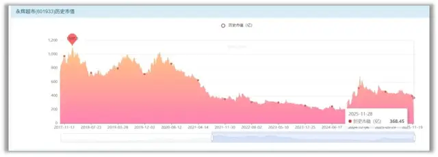 如今的永辉超市股价相较于2018年的千亿市值已经蒸发了近三分之二,在市值严重缩水的当下,身为董事长的张轩松选择低位套现减持,无疑是对于投资者信心的沉重打击,截止11月末,永辉超市股价继续下探,市值已跌至368.45亿元。