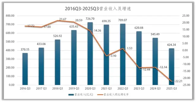 具体看第三季度,营业收入124.565亿元,同比下降25.55%;单季度亏损4.69亿元,同比下降32.68%,亏损同比增加了1.16亿元。