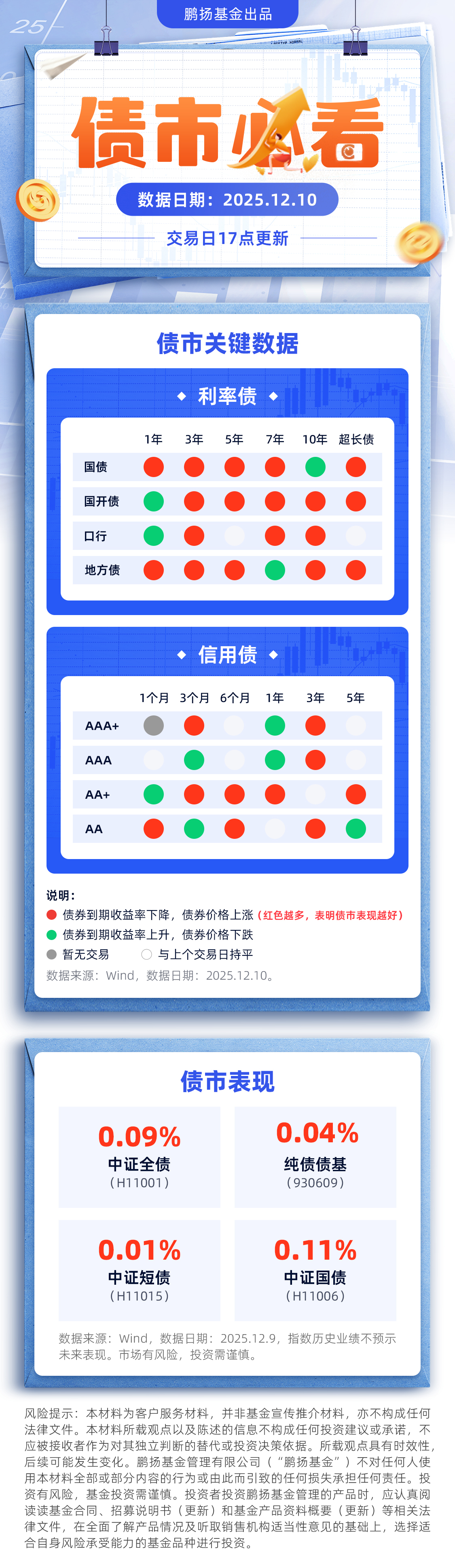 【12月10日17点】今日债市必看 摘要:今日利率债多云,信用债小雨