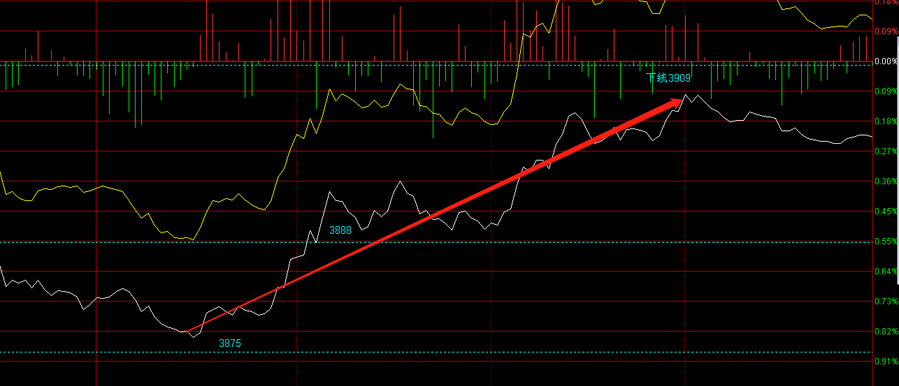 最高至上行到预设下线3909的下方3606.12点,显弱。