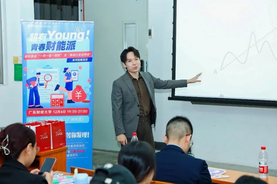 12月4日,在中国证券投资基金业协会指导下,嘉实基金“一司一省一高校”及“基金行业话养老”投资者教育系列活动走进广东财经大学。本次活动以“青春财能派”为主题,通过专业讲解、互动问答等寓教于乐的形式,助力青年学子树立科学理财观念,明晰职业发展路径,提前规划人生未来,活动吸引了70余名师生热情参与,现场氛围热烈。