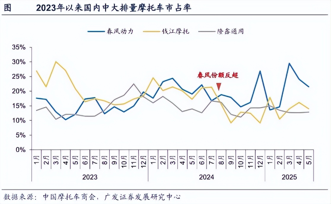 从摩托车气缸头起家的春风动力,凭借自身独一无二的大排量水冷发动机技术,将业务范围一步步拓展至中大排量摩托车市场,被国宾队选为指定用车更是让其名声大噪,成为与钱江摩托、隆鑫通用等摩托车厂分庭抗礼的存在。