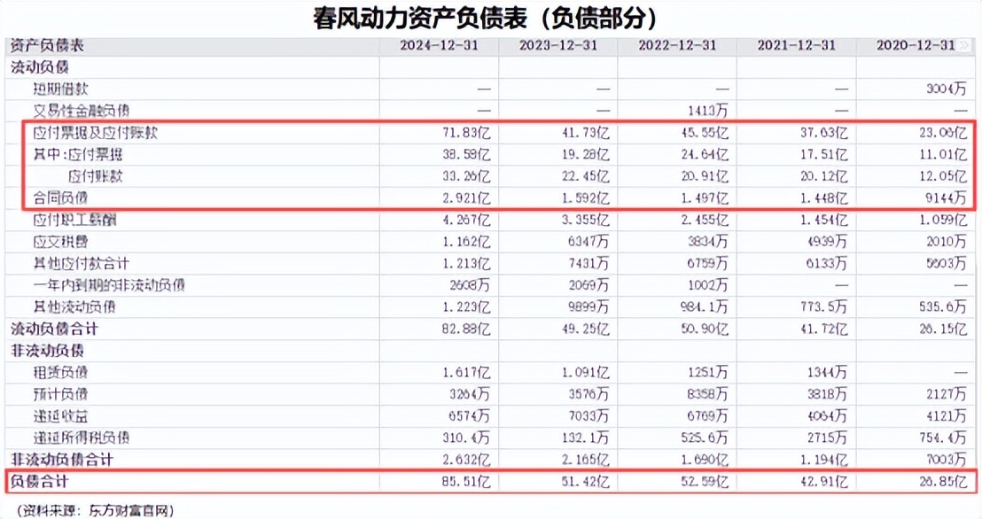 2023年-2024年,公司负债总额从51.42亿提高到85.51亿,主要是因为应付票据、应付账款、合同负债等经营性负债增加所致,长短期借款等有息债务直接为0。
