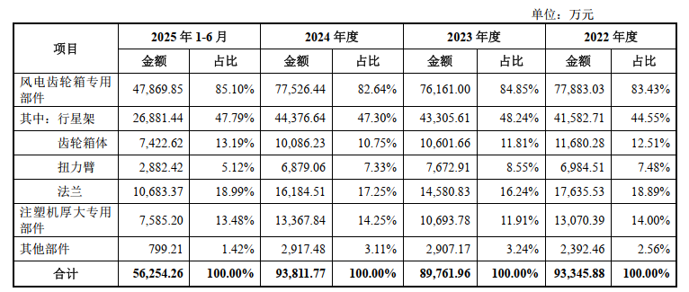 公司是少数长期专注于风电齿轮箱的核心部件生产企业,其风电装备部件主要包括齿轮箱专用部件中的行星架、齿轮箱体、扭力臂和法兰等,系风电机组中技术含量最高的部件之一。