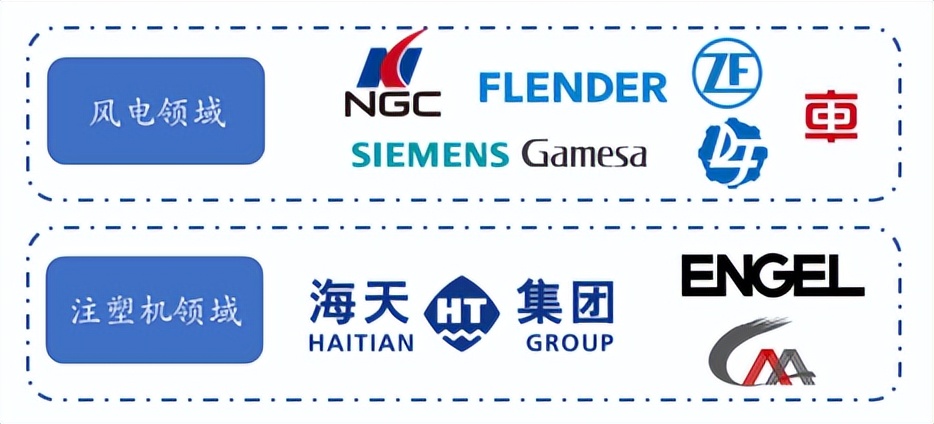 在全球市场,风电齿轮箱行业全球排名前列的企业为南高齿、弗兰德、德力佳、采埃孚,上述四家企业占全球风电齿轮箱行业的市场份额超过70%,其中南高齿风电齿轮箱产品全球市场占有率持续多年超过30%;在国内市场,主要的本土风电齿轮箱制造商为南高齿、德力佳,两者市场份额接近70%,其中南高齿的国内市场份额接近50%。此外,中国中车近年来依托其在风电主机的行业经验进入风电齿轮箱领域,拥有一定影响力。公司是南高齿、弗兰德、采埃孚等行业领先企业风电齿轮箱专用部件的长期主力供应商,大部分主要客户与公司合作时间十年以上,其中南高齿与公司合作超过二十年。与此同时,公司与德力佳、中车股份等风电齿轮箱行业优质客户也逐步建立了稳定的合作关系。在注塑机行业,公司是全球大型注塑机龙头海天塑机厚大专用部件的长期主力供应商,后者在全球市场占有率超30%,在国内市场占有率超40%。