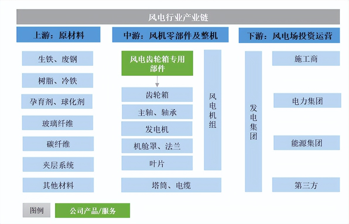 图:公司核心产品风电齿轮箱专用部件所处产业链情况