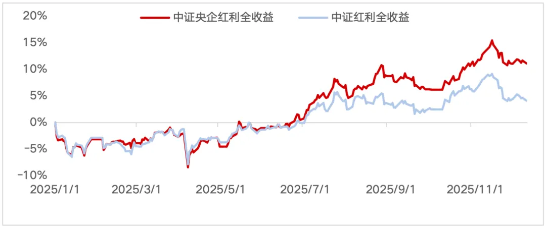 图:中证央企红利全收益指数与中证红利全收益指数区间表现