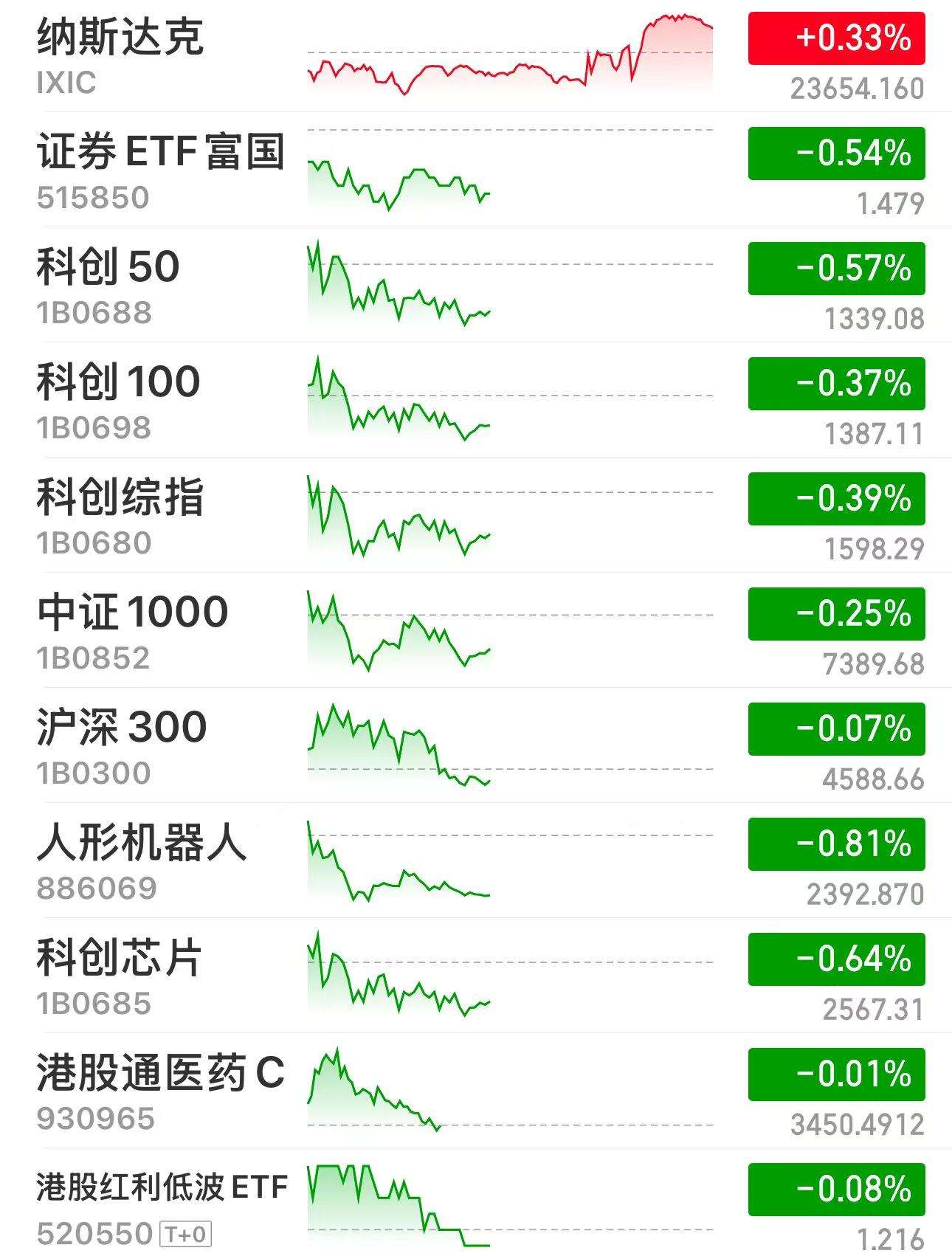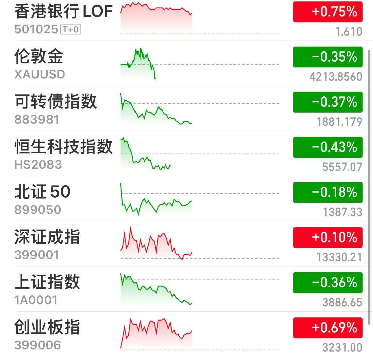 股基:高开了但是回落了一些、今天能红就行呀,我今天有错觉以为整体市场都是红红的 ,白银啊黄金债券都红了,但是股不太给力、特别是港股真是不知道怎么说了,今天机器人和人工智能跌了多一些,昨天加的创业板指数也红了、今天稳稳的吃一点肉也可以。