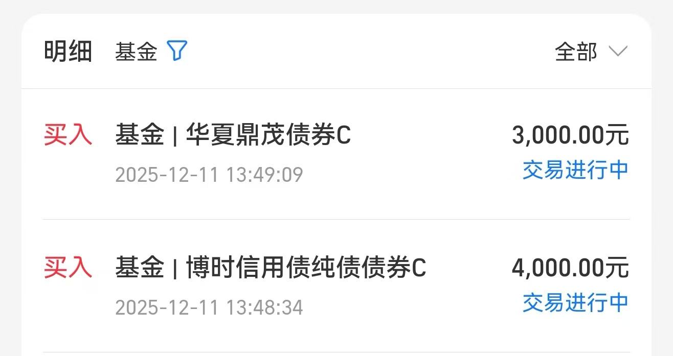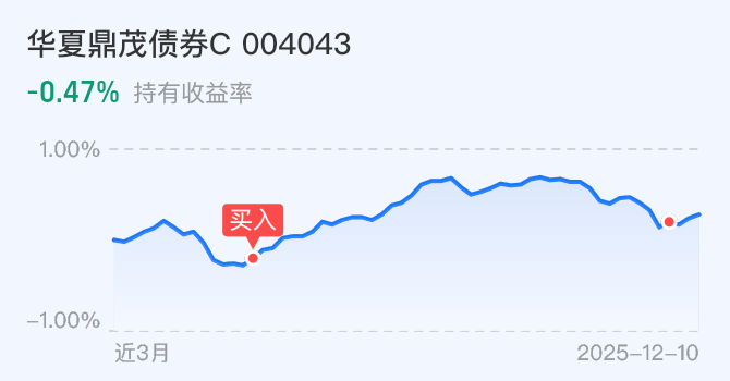 华夏鼎茂主要是布局的长债,最近长债都开始反弹了,前段时间利率债调整比较多,我认为已经接近调整尾声,所以趁位置比较低,我就继续布局了!$华夏鼎茂债券C(OTCFUND|004043)$