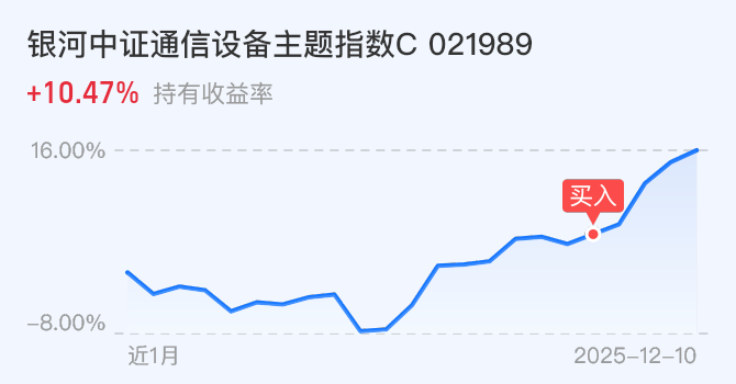通信我的仓位并不多,只是小仓,近期也在等着机会能不能补一点,但是基本上没有给太大的机会,所以我就持有小仓观望!$银河中证通信设备主题指数C$
