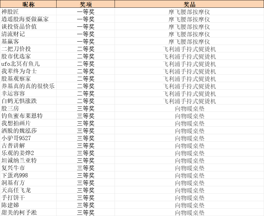 为了回馈小伙伴们的热情,现公布本次获奖的用户名单~