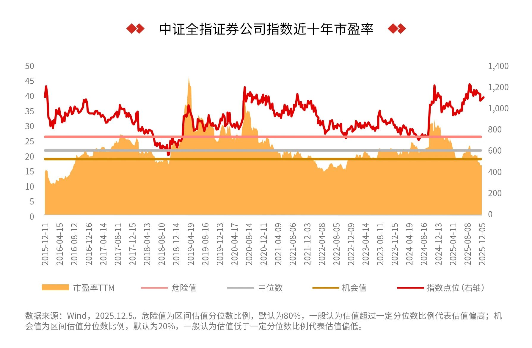 当前券商板块估值已迈入深度价值关注区间,中证全指证券公司指数的市盈率(PE)、市净率(PB)双双处于历史低位区域。值得关注的是,板块估值与业绩走势呈现明显背离:2025 年前三季度上市券商归母净利润同比增幅达63%,而同期中证全指证券公司指数PE分位数仅为13.53%,处于机会值区间内。这一数据差表明,市场尚未充分消化行业盈利大幅改善的利好,板块估值修复空间清晰可见。(资料来源:Wind,2025.12.5)