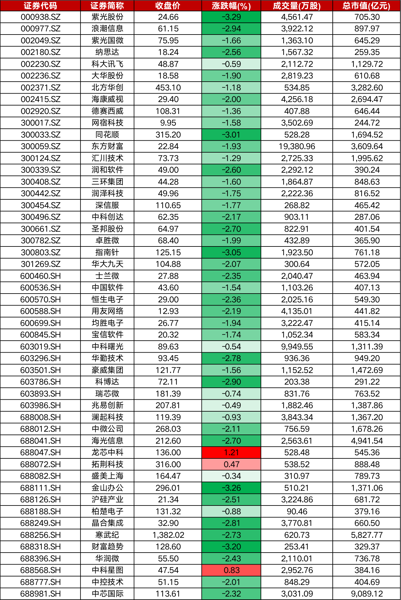 今日成分股龙芯中科、中科星图涨幅居前。