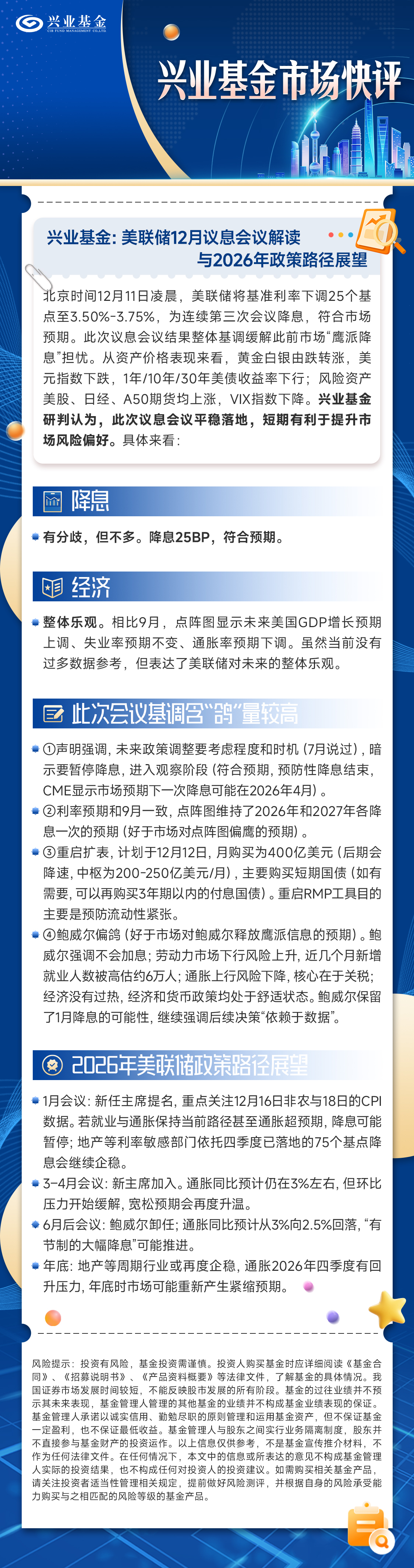 兴业基金市场快评:美联储再降息25bp,如何看待?