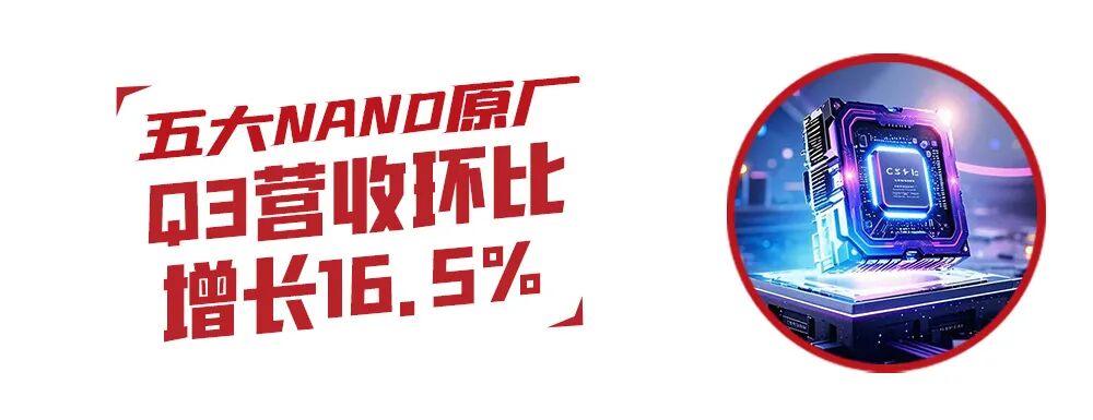 据TrendForce最新调查,2025年第三季度全球前五大NAND Flash品牌商合计营收环比增长16.5%。展望第四季度,受TLC/QLC eSSD需求攀升及产能受限影响,NAND闪存价格预计将再上涨20~25%。