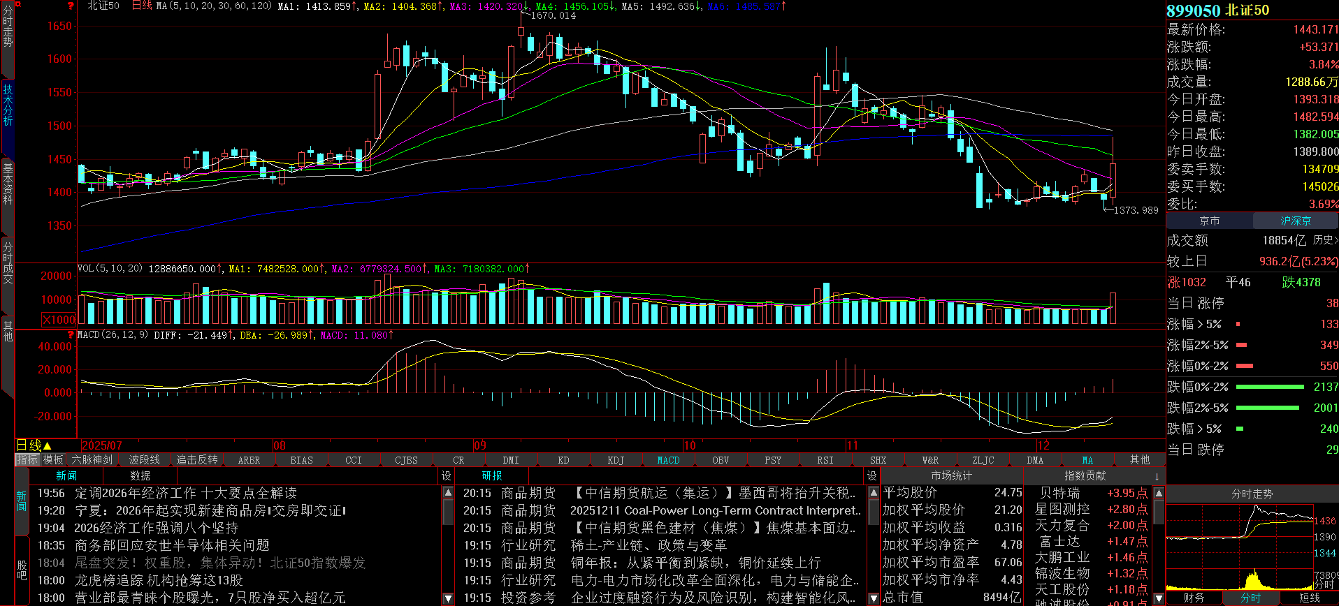 说实话,可能会让有些人不高兴,近几个月来北证50的4次脉冲上涨,这次是最弱的一次,K线上也形成了冲高回落走势,上方半年线、60日线、30日线压力重重,正常情况下,北证50接下来较大概率是低开回归前些日子的横盘震荡。
