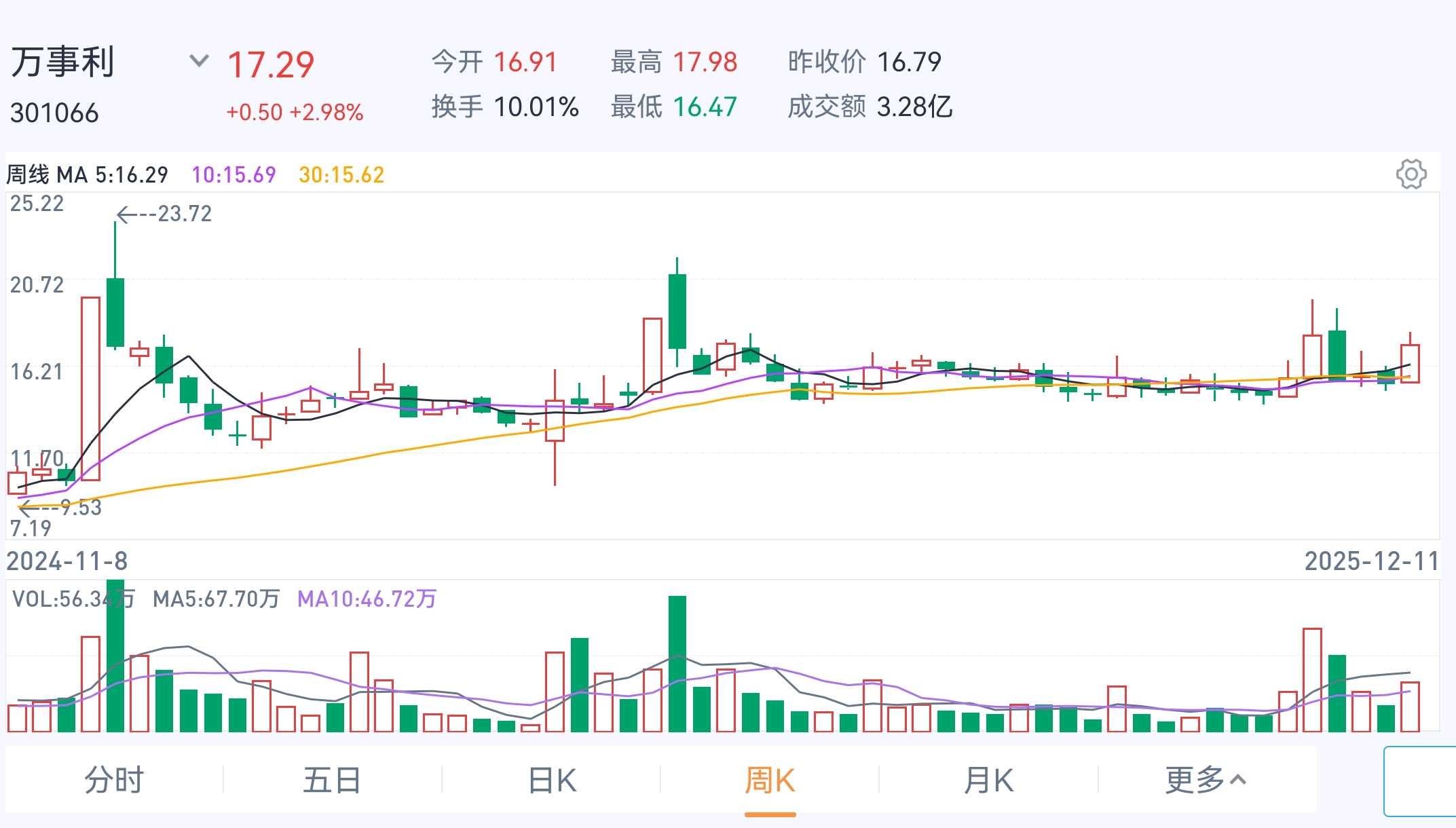 二是,位置低。万事利横盘一年,没有爆炒过。跨年妖股必然会是低位起来的,现在已经暴涨的股票,不会成为跨年妖股。