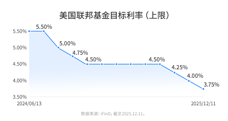 当地时间12月10日,美联储再次按下“降息键”,将联邦基金利率目标区间下调25个基点至3.50%-3.75%,本轮降息周期已累计降息175个基点,全球流动性环境有望维持宽松。