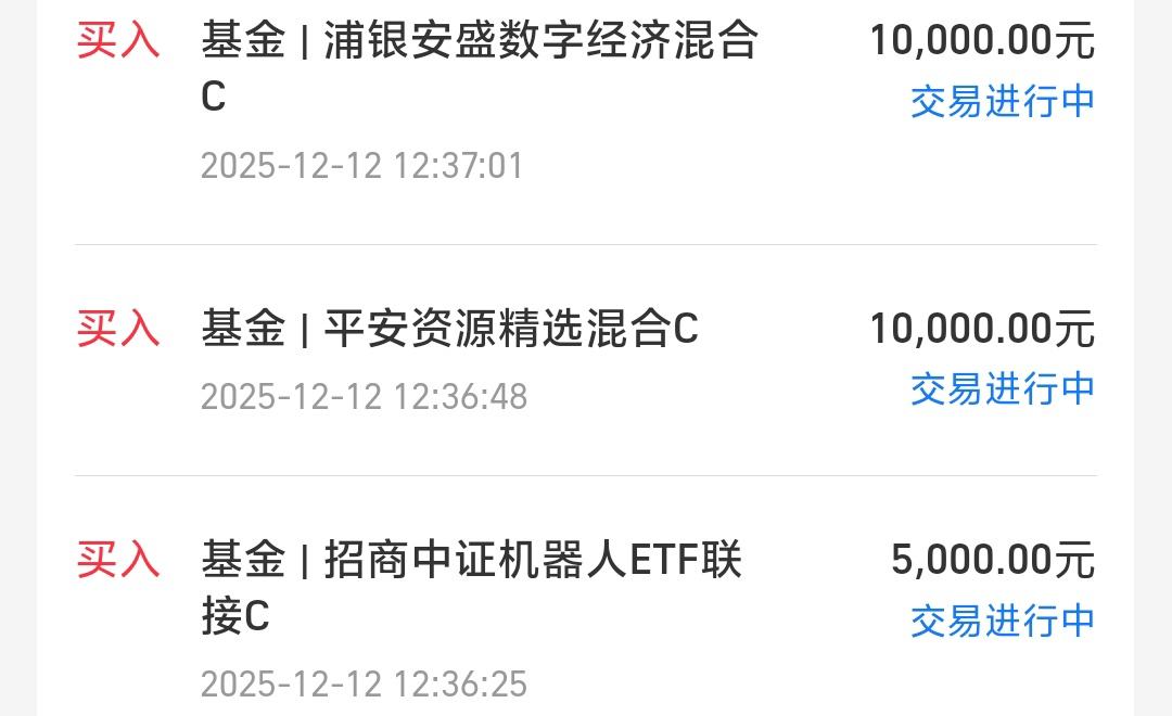 $平安资源精选混合C$,+10000元。一只资源混合,可以根据周期灵活配置资源龙头,看之前涨幅应该持仓铜为主,最近的涨幅远超同类,表现非常不错。考虑到周四美联储如期降息,黄金突破4300美元,美铜、美银屡破高点,接下来或进一步刺激有色资源股走强,叠加稀土、锂矿等受出口管制、供需偏紧等进入涨价周期,几乎每个有色资源方向都有增长预期。我计划继续布局平安资源精选,跟上绩优资源混合的下一波行情。
