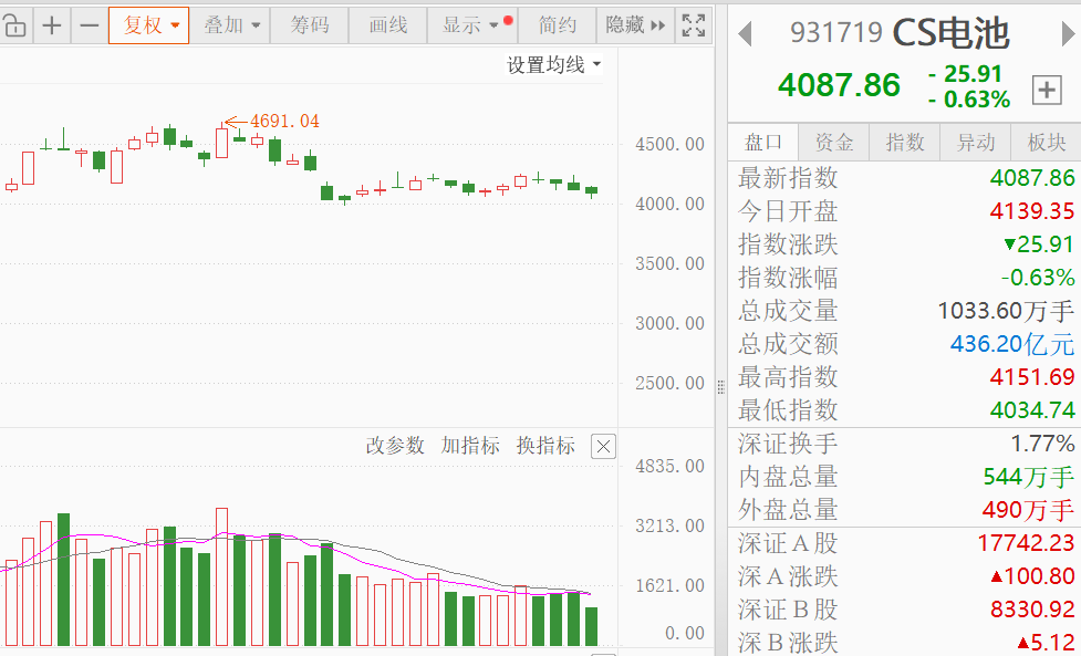 电池-0.63%,电池今天也是比较可惜,高开冲高后回落转跌,而后才随盘面探底回升,考虑电池景气度没问题,等会儿老哈准备继续中长期投。