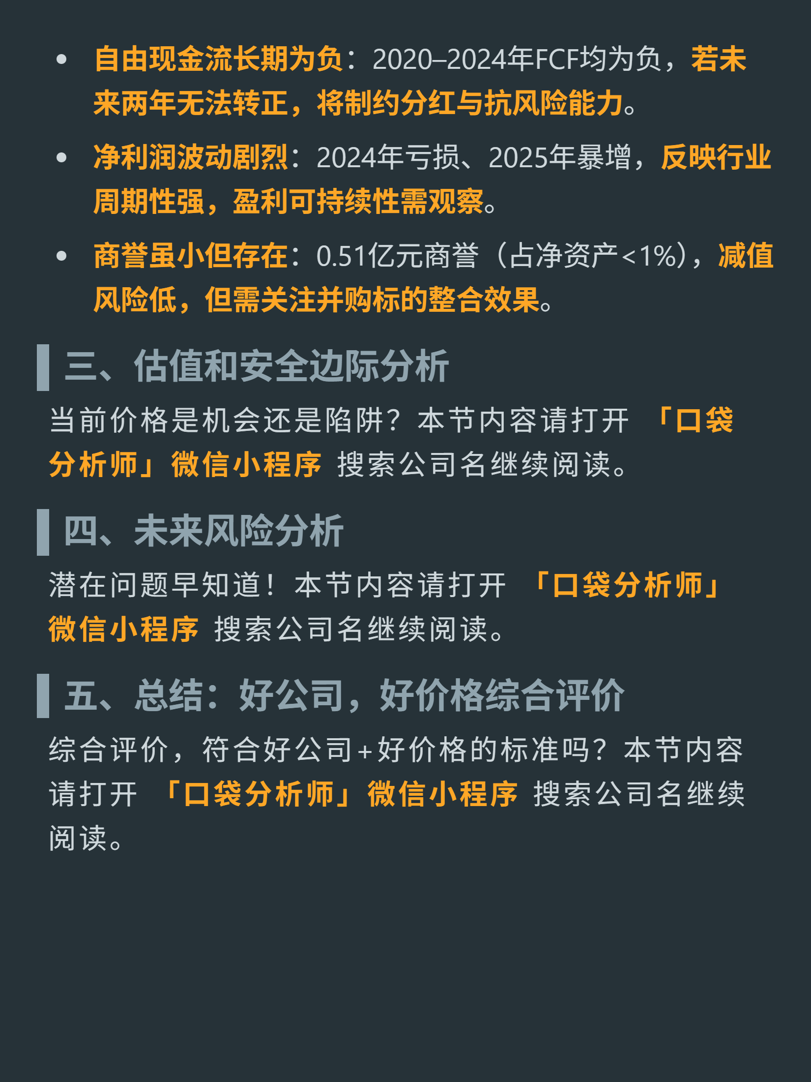 排雷提示:自由现金流长期为负,净利润波动大,需关注产能释放能否转化为正向FCF。