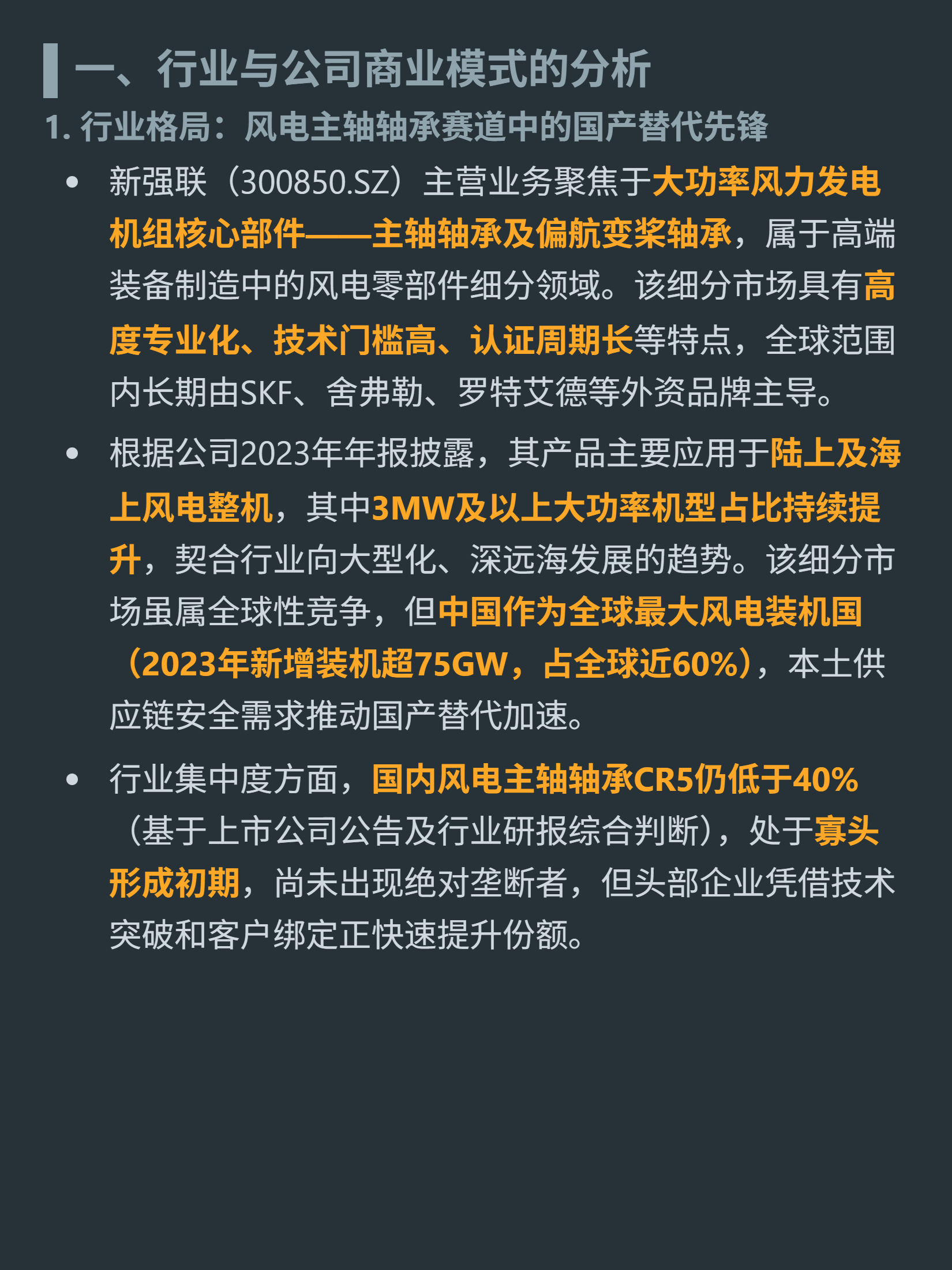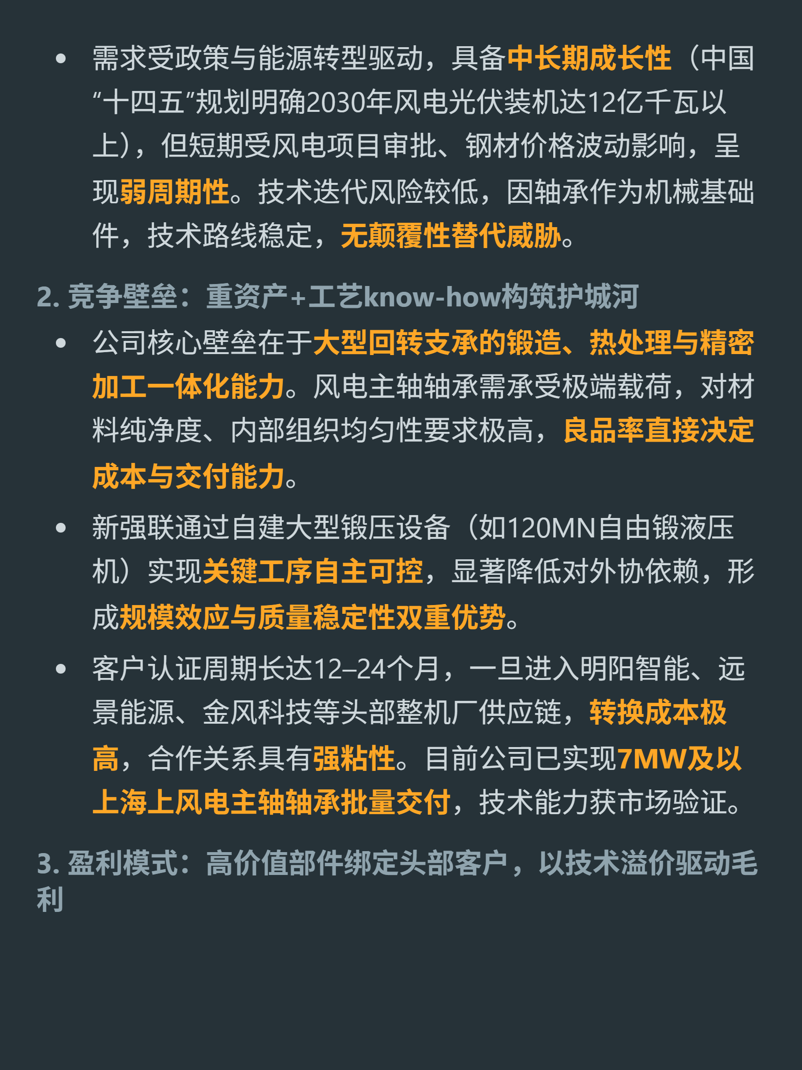 $新强联(SZ300850)$$金雷股份(SZ300443)$$通裕重工(SZ300185)$最近研究了新强联(300850.SZ),核心是风电主轴轴承国产替代下的成长期机会,关键看技术壁垒与现金流转化。