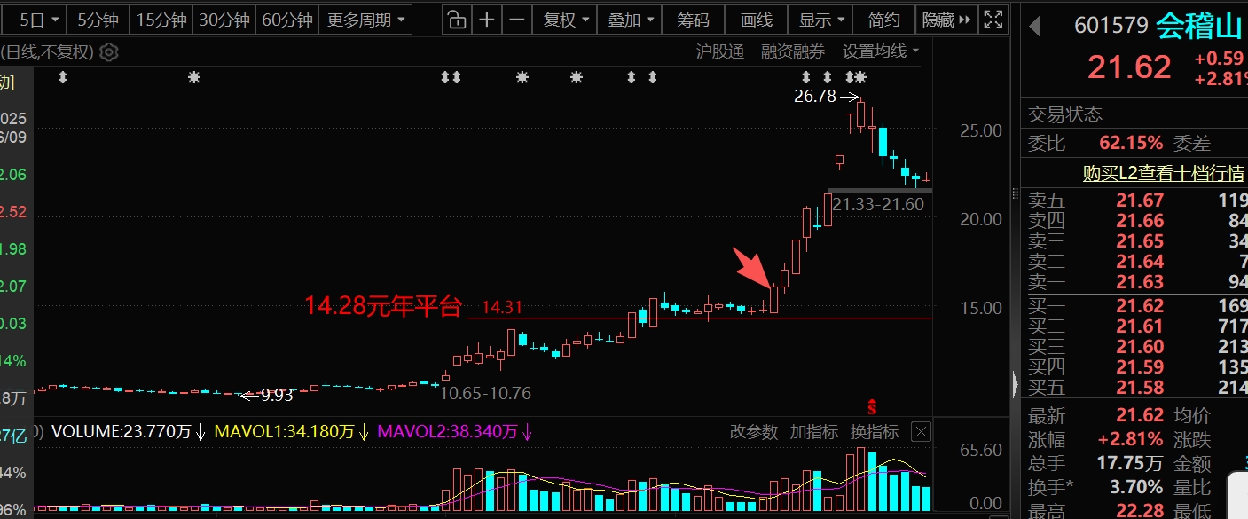 或下下周一学会稽山5.23日低开快速拉起秒板,第二天大幅高开封板起飞…