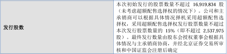 2. 发行方案:公司发行前总股本5075.9500万股,拟发行1691.9834万股(不包含超额配售),发行后总股本6767.9334万股(不包括超额配售)。拟募集资金30000万元,拟发行价17.73元。