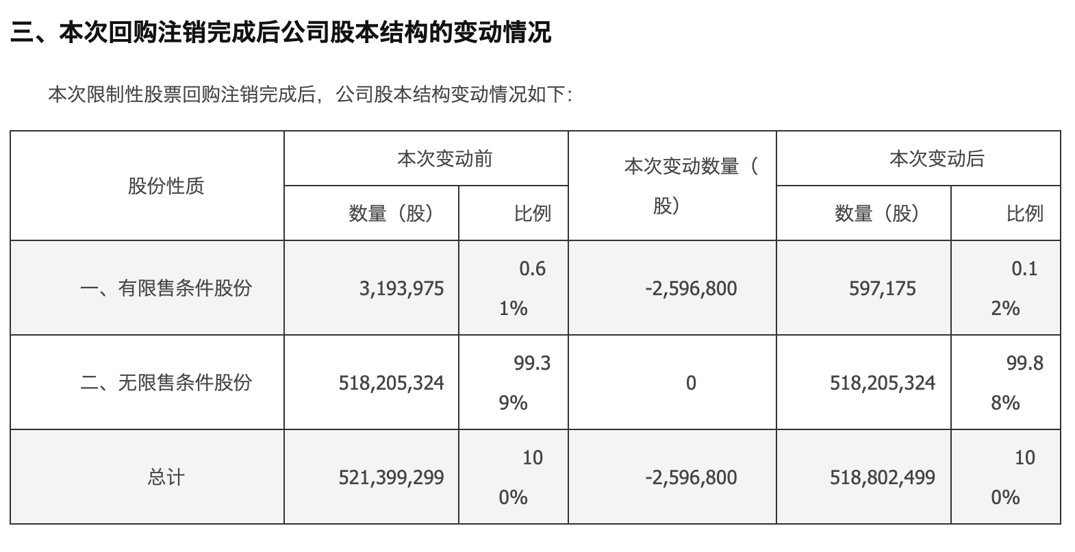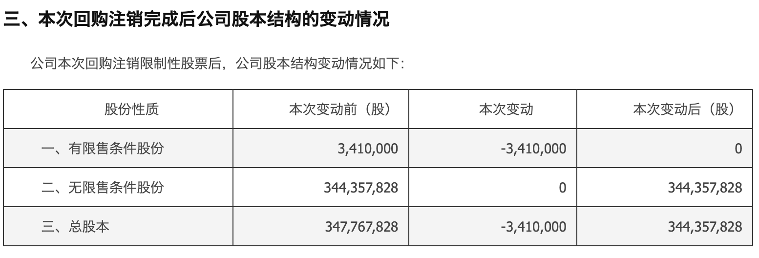 最近回购了663万股,回购全部注销了。
