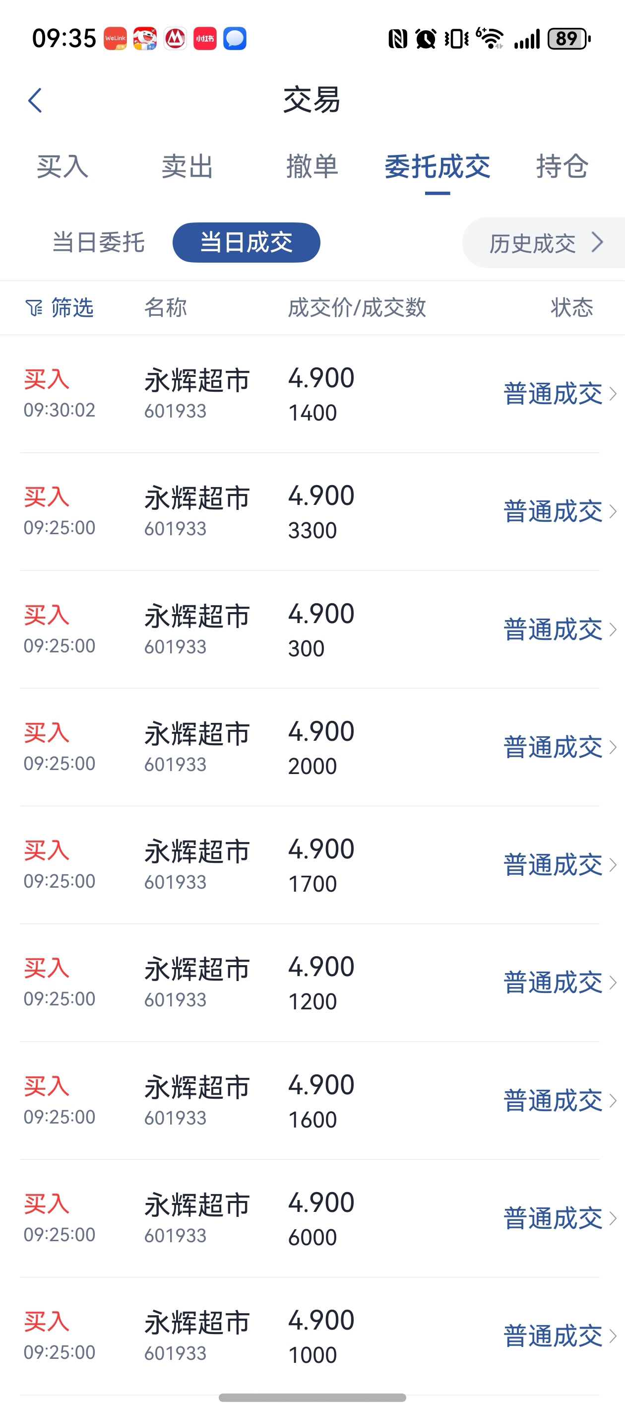 $永辉超市(SH601933)$ 今天早盘4.9低开,集合竞价毫不犹豫的把上周五T出来的40%仓位打满。